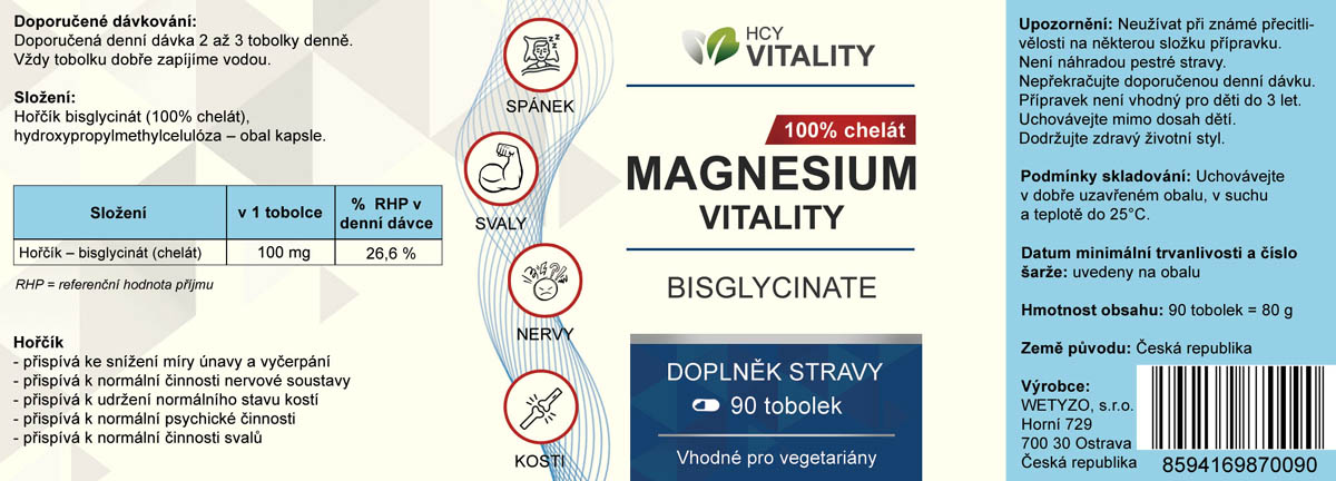 Magnesium Vitality je doplněk stravy s hořčíkem ve formě chelátu.